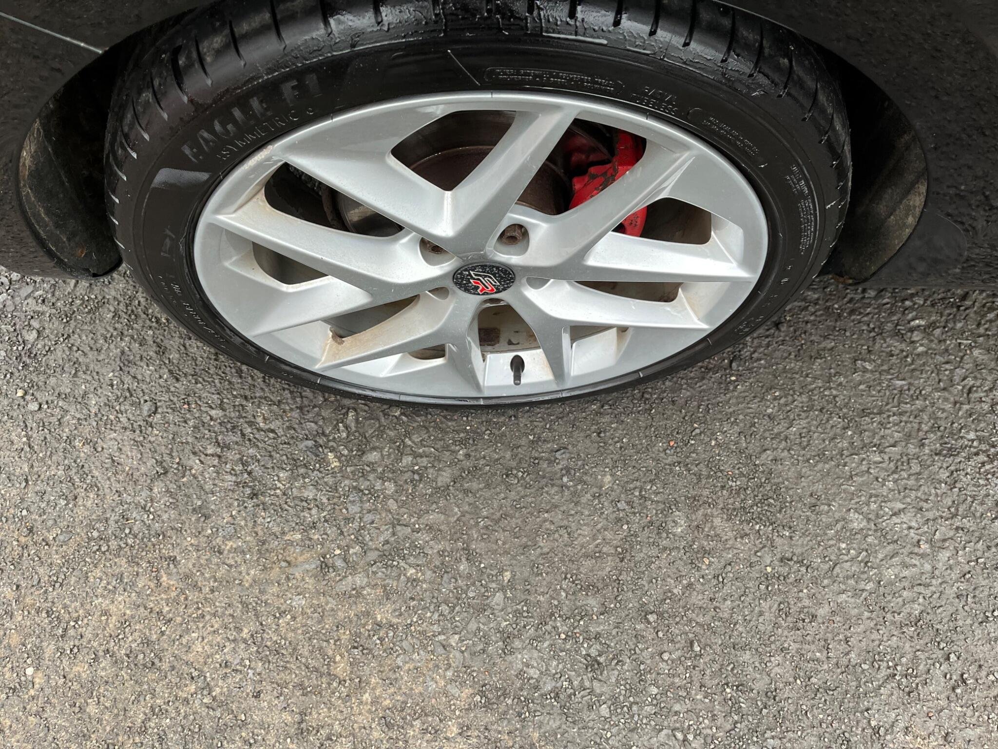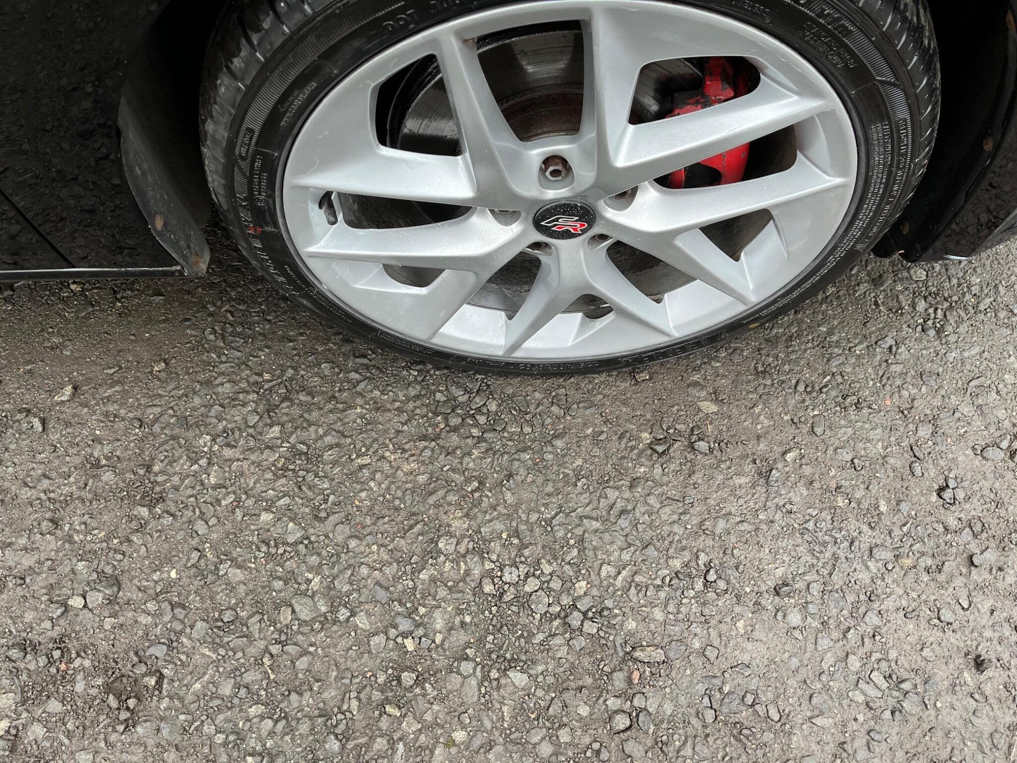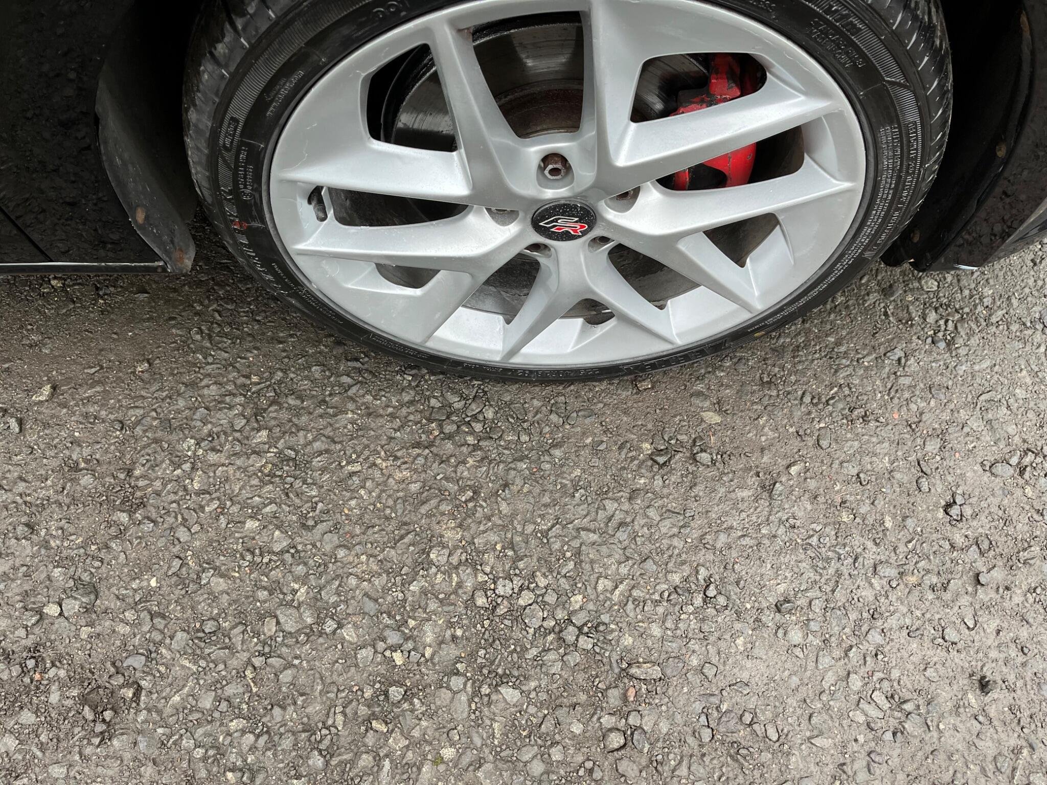 - Steering Wheel - Flat-Bottomed Perforated Leather with Red Stitching and FR Logo