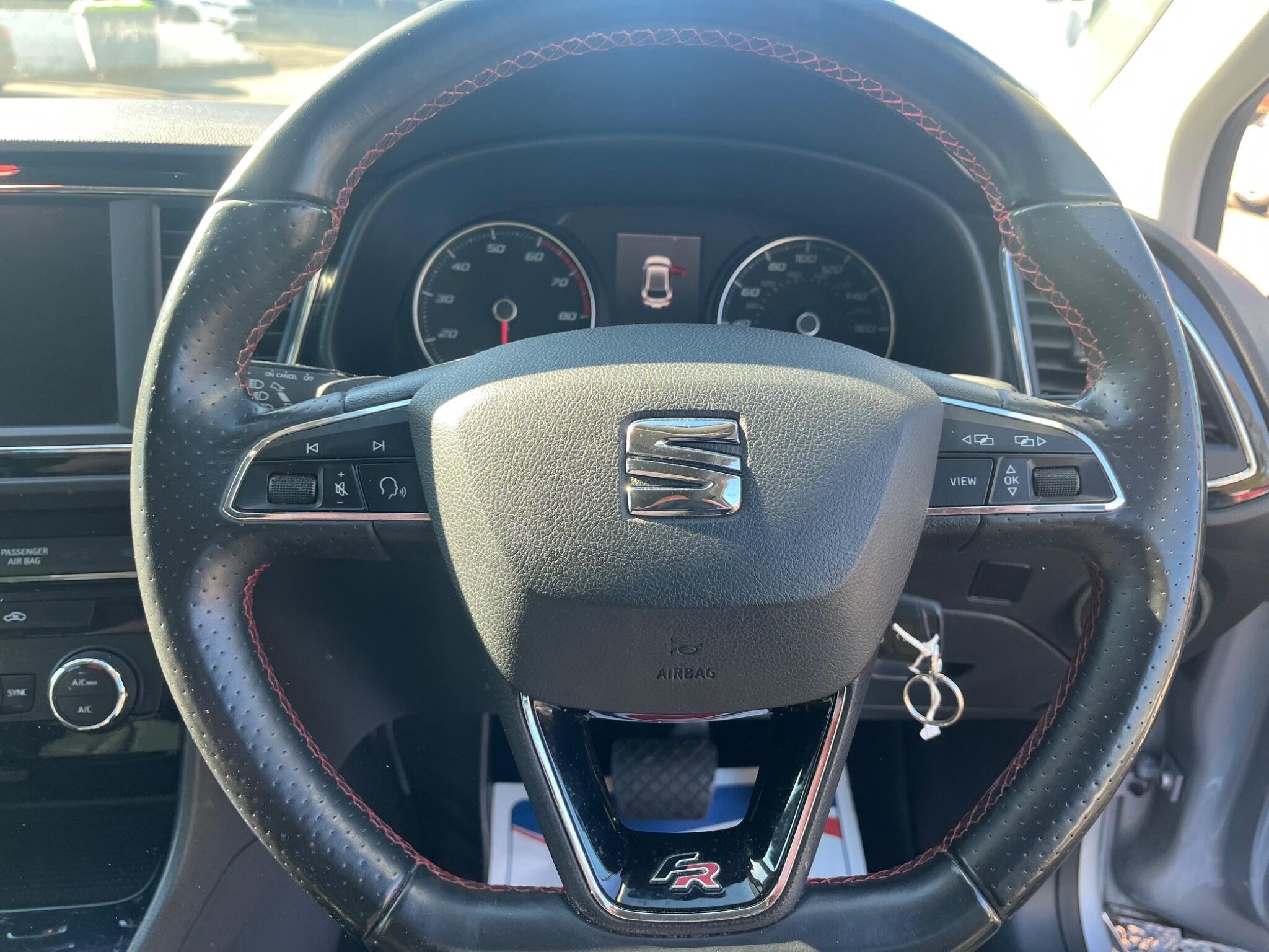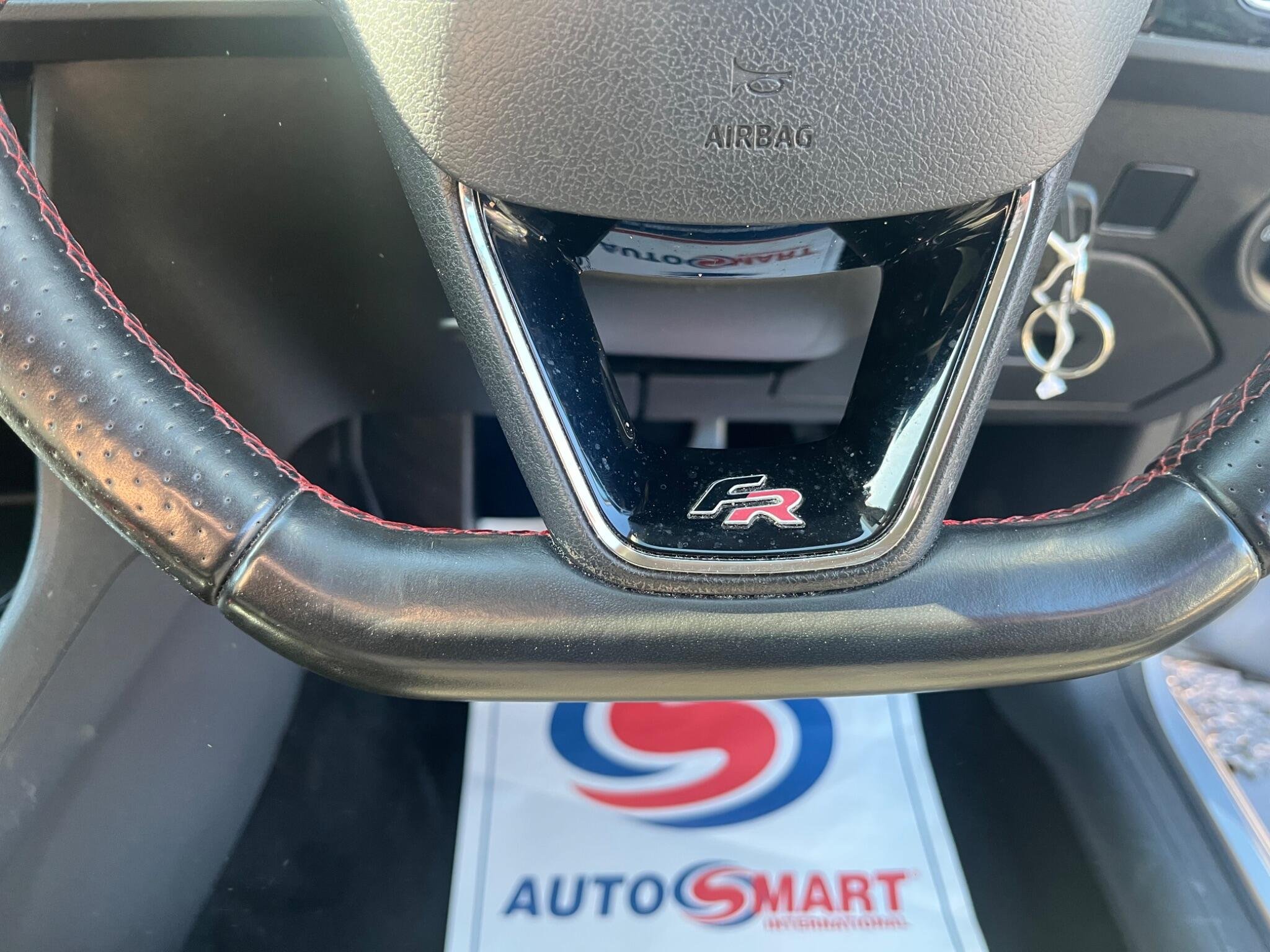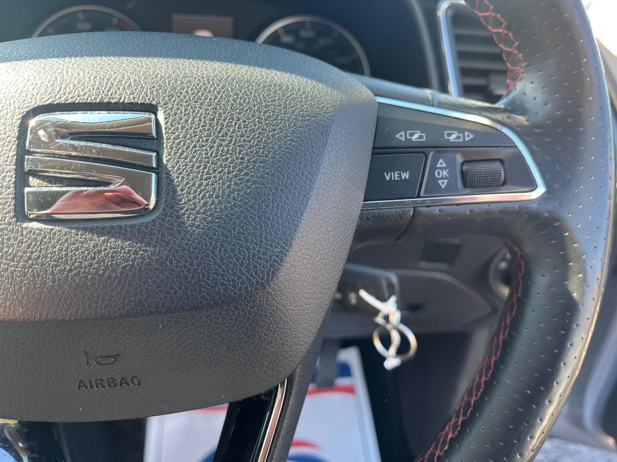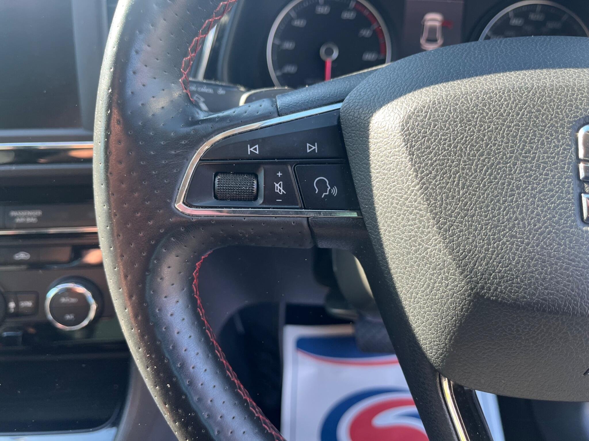 - Steering Wheel - Flat-Bottomed Perforated Leather with Red Stitching and FR Logo